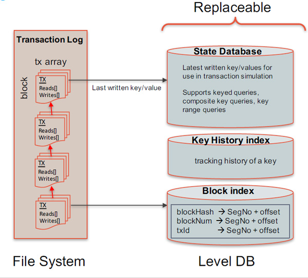 图3中,区块链帐本是在FileSystem文件系统中保存的,而Level DB存放世界状态。