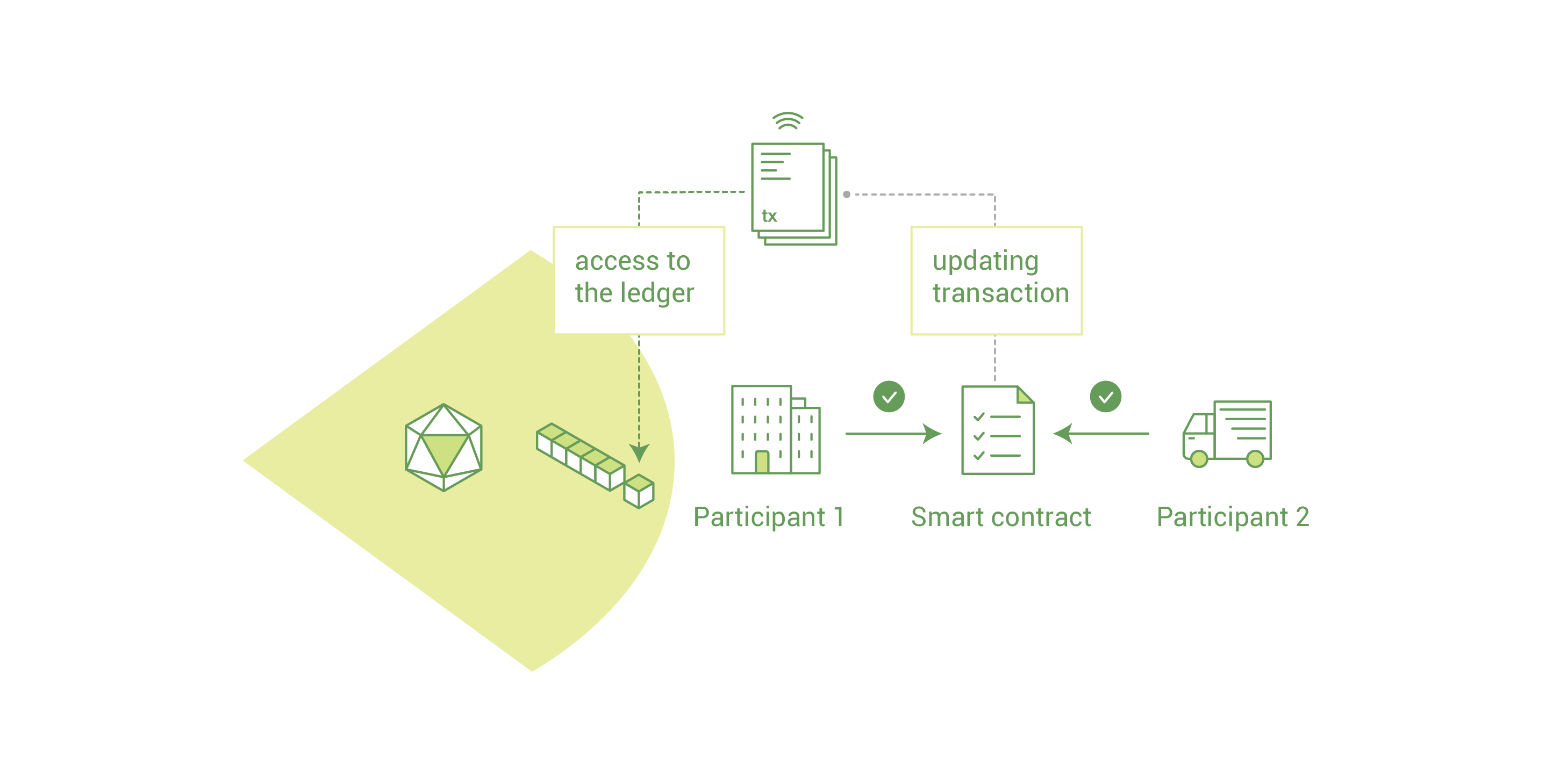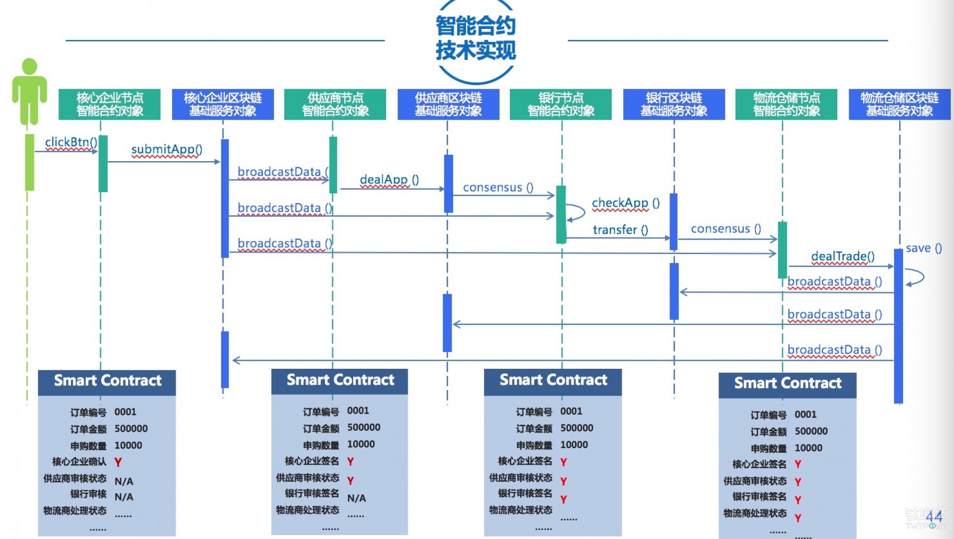 智能合约可以在供应链等较复杂的业务场景下起到很大的作用,如下面的图5所示: