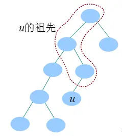 u和v的公共祖先指一个节点既是u的祖先,又是v的祖先。u和v的最近公共祖先指距离u和v最近的公共祖先。若v是u的祖先,则u和v的最近公共祖先是v。