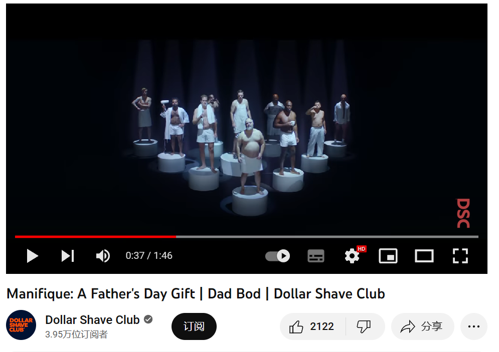 在被联合利华收购后,DSC也没有失去其创意营销的定位。联合利华没有将所有品牌整合到一个统一的企业组合中,而是将一些品牌作为独立的子公司进行管理。这是一个明智的策略,因为它使企业集团能够利用各个品牌的优势、价值和故事。因此,Dollar Shave Club得以保留其最初的品牌定位,即“搞怪”、“不说屁话”、“可靠”和“毫无保留的真诚”的公司。(“fun”, “no-BS”, “relatable”, and “unapologetically truthful”)他们一直在培养这些品牌联想。DSC的视频营销就是上述观点的完美证明。2018年DSC推出了“Get Ready”活动,视频中出现了各种搞怪的人,他们各自做着各种“古怪”的梳妆、剃须习惯。2019年的“Dad Bod”活动广告中,不同体型和大小的男人穿着浴巾和浴袍,面无表情地做着精心设计的舞蹈,这表明DSC欢迎所有人。