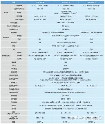 图1-6 HMI人机界面产品指标参数表