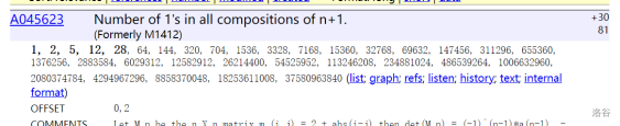 我把方程列成矩阵的形式,发现这样瞬间整齐了许多。接着我把 \(n \leq 5\) 的答案整合在一起,把解的比值关系用序列的形式列出来,放到 oeis 上一查:
