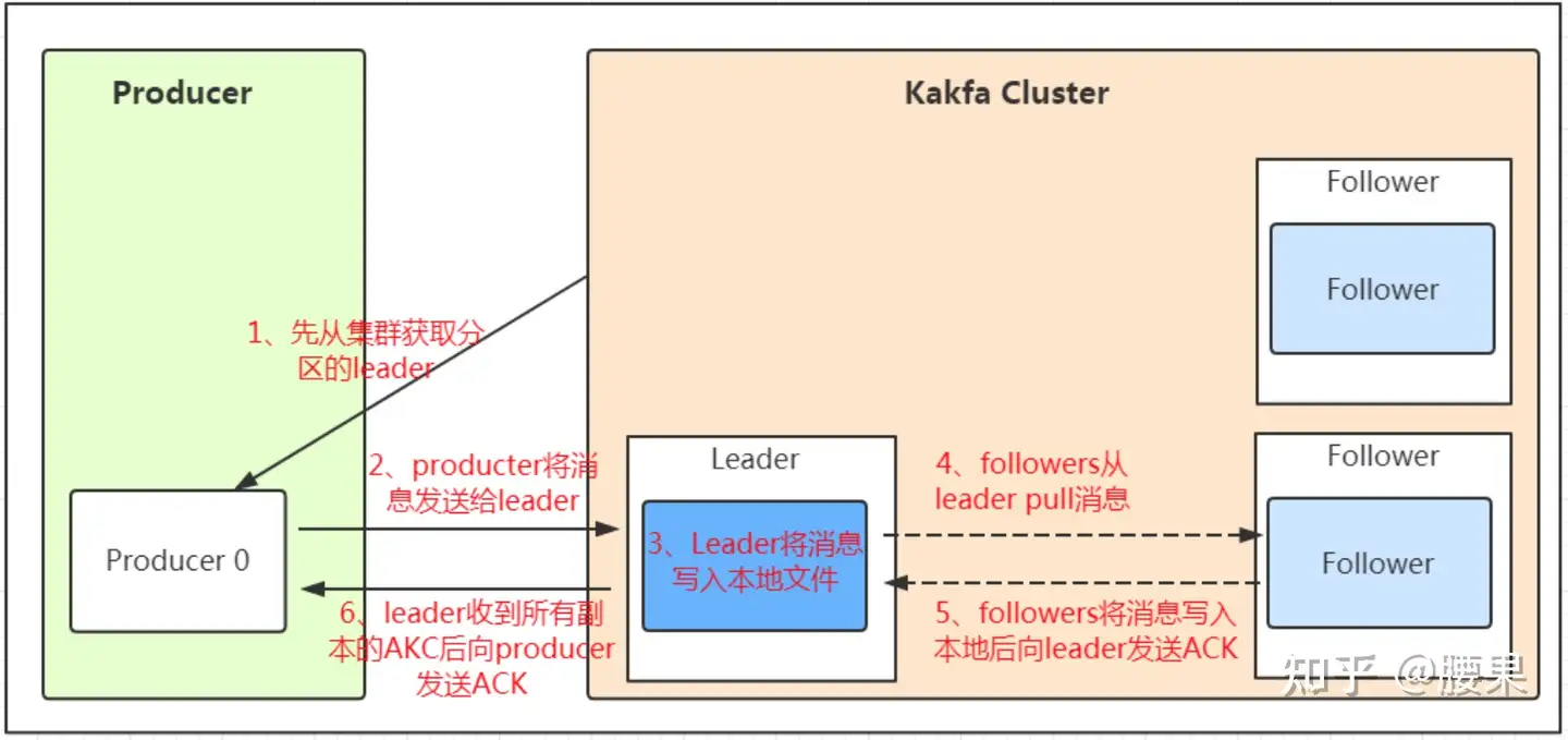 永远找leader!消息写入leader后,follower是主动的去leader进行同步的!producer采用push模式将数据发布到broker,每条消息追加到分区中,顺序写入磁盘,所以保证同一分区内的数据是有序的!