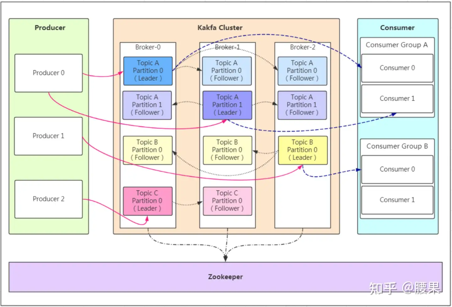 - 同时保证每个 Partition 内的消息顺序传输。同时支持离线数据处理和实时数据处理。
