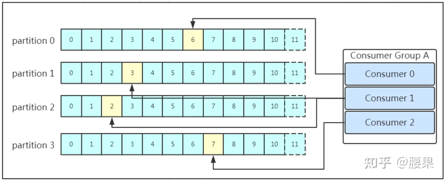 多个消费者可以组成一个消费者组(consumer group),每个消费者组都有一个组id!同一个消费组者的消费者可以消费同一topic下不同分区的数据,但是不会组内多个消费者消费同一分区的数据。