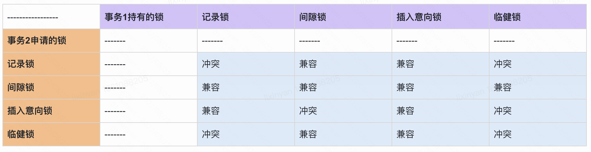 - 间隙锁之间是兼容的,即多个事务可以在同一个间隙上获得间隙锁