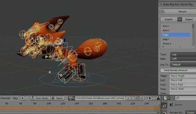 - 腿:大腿、小腿、脚、脚趾骨。带有可选的扭曲骨骼和用于额外大腿骨骼的“3 根骨骼腿”设置,适用于四足生物