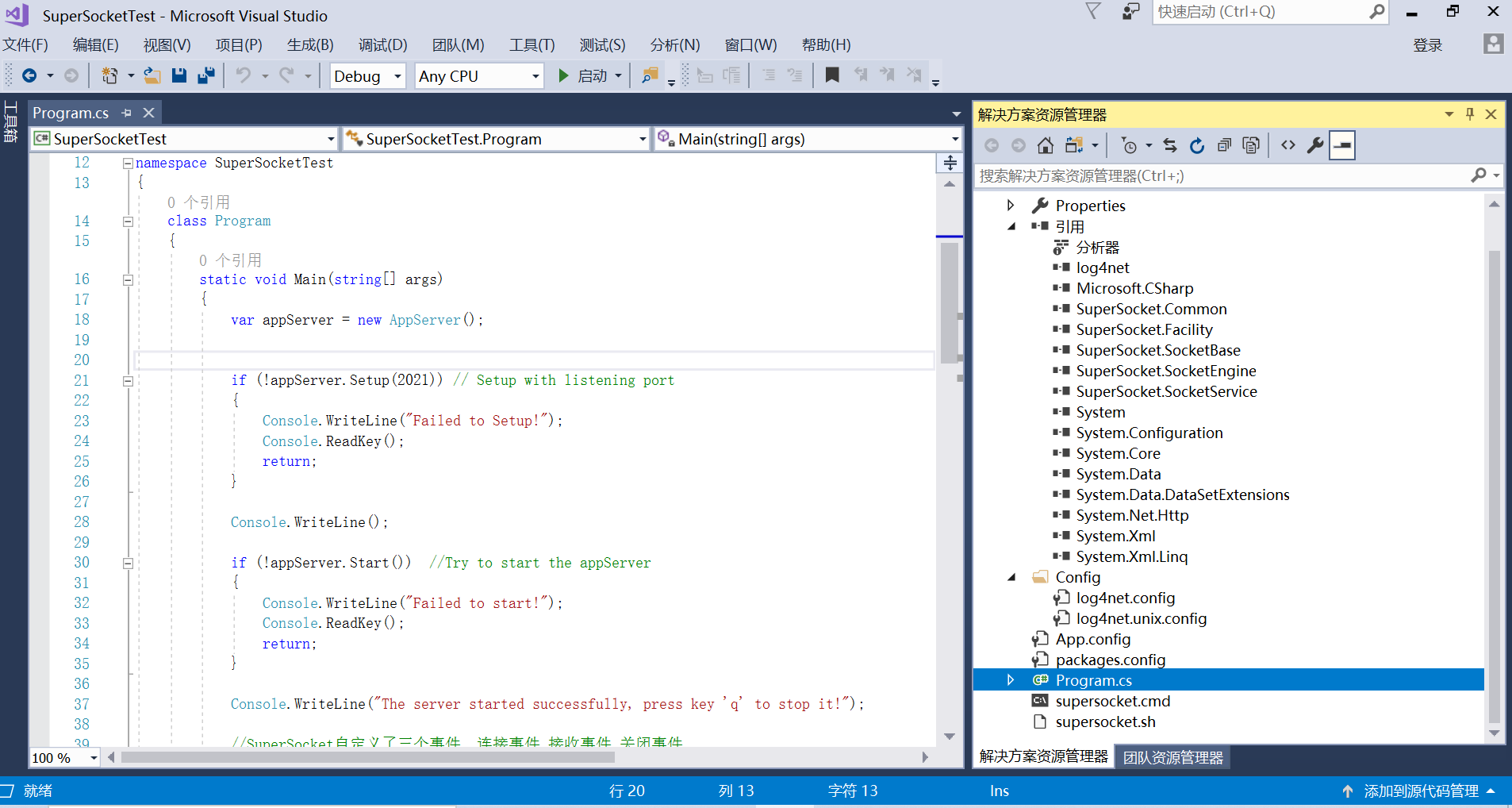 我是一名单片机嵌入式软件开发工程师,之前从来没有接触过PC端的编程工作,只是这二年由于工程项目有需求,因此匆忙学习C#语言并开发了一款简单的C/S架构的服务器程序,勉强可以满足工程需要,但是毕竟自己非专业人员,编写的程序还有很多漏洞,很多地方还有欠缺,所以空闲时候一直想在网上寻找一种功能强大、稳定可靠的C/S架构的服务器和客户端开源程序来移植到工程项目中,通过网友的介绍知道了SuperSocket,用它可以非常便捷的创建一个高可用,高并发的服务系统。这部教程本人从头到尾介绍如何利用SuperSocket搭建一个属于自己的服务器程序。