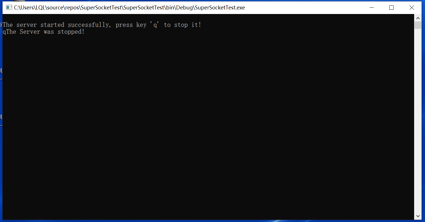 - Console.WriteLine("The server started successfully, press key 'q' to stop it!");